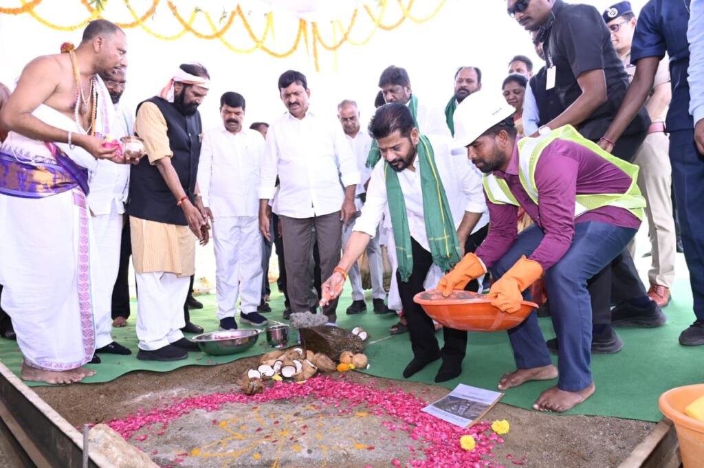 During his visit to the Khammam district, Chief Minister Revanth Reddy launched several key development projects worth over ₹360 crore. He began by performing the “Bhumi Puja” (groundbreaking ceremony) for the new JNTU Engineering College buildings in Edulapuram Municipality, which are being constructed at a cost of ₹108.60 crore. In Kusumanchi, the CM laid the foundation stone for a new 100-bed hospital spread across 5 acres with an investment of ₹45 crore. He also officially started the work for the Munneru-Palair Link Canal, a major irrigation project costing ₹162.54 crore.
