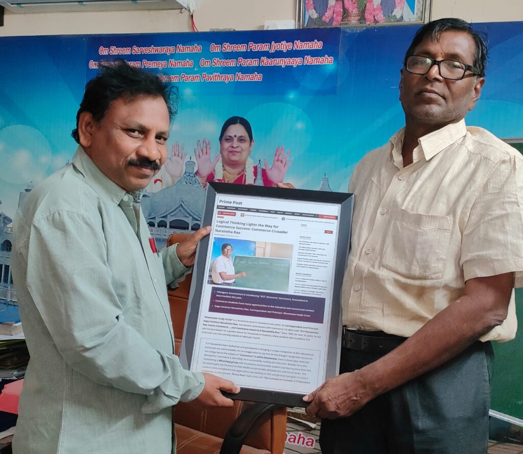 Many people called to say that they were unaware of the vast number of commerce courses with good job prospects, and only learned about them through G.V. Narasimha Rao’s interview published by Prime Post. They mentioned they didn’t know about the diverse courses that could be pursued alongside commerce, such as AI, Data Analytics, Digital Marketing, FinTech, CA, ACCA, CPA, CFA, FRM, ESG, Enrolled Agent, CMA, and CFP. Many feel that this interview will introduce the abundant employment opportunities in commerce courses to numerous students and parents who are currently rushing towards Engineering and Medicine. Following the publication of this interview, ‘Pathshala’, a commerce educational institution based in Hyderabad, even contacted G.V. Narasimha Rao regarding the possibility of opening a branch in Khammam. Furthermore, businessmen from the real estate and construction sectors are requesting G.V. Narasimha Rao to send them skilled accountants.
